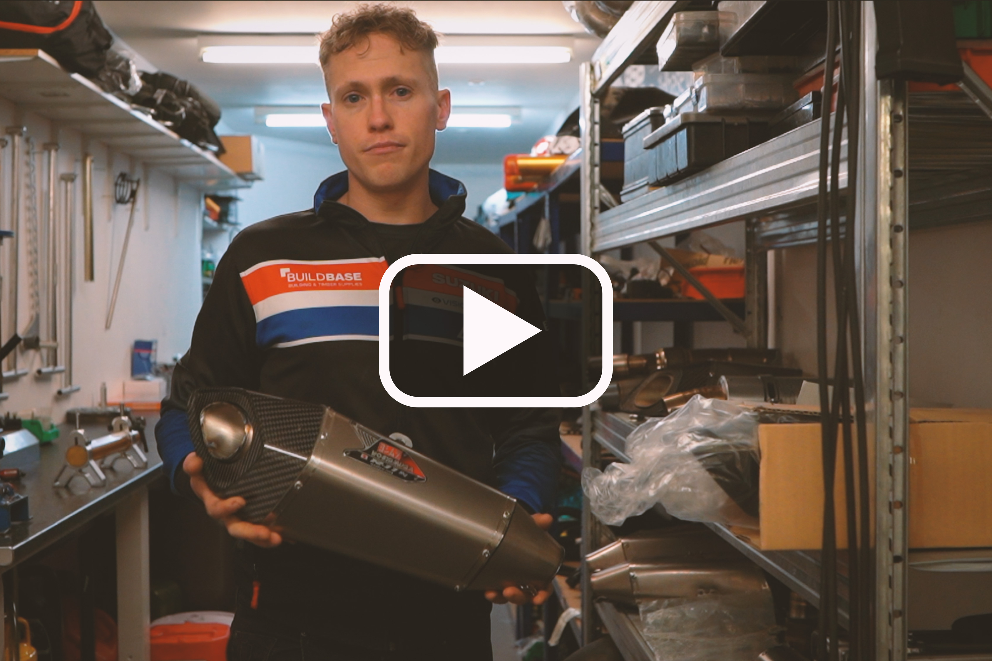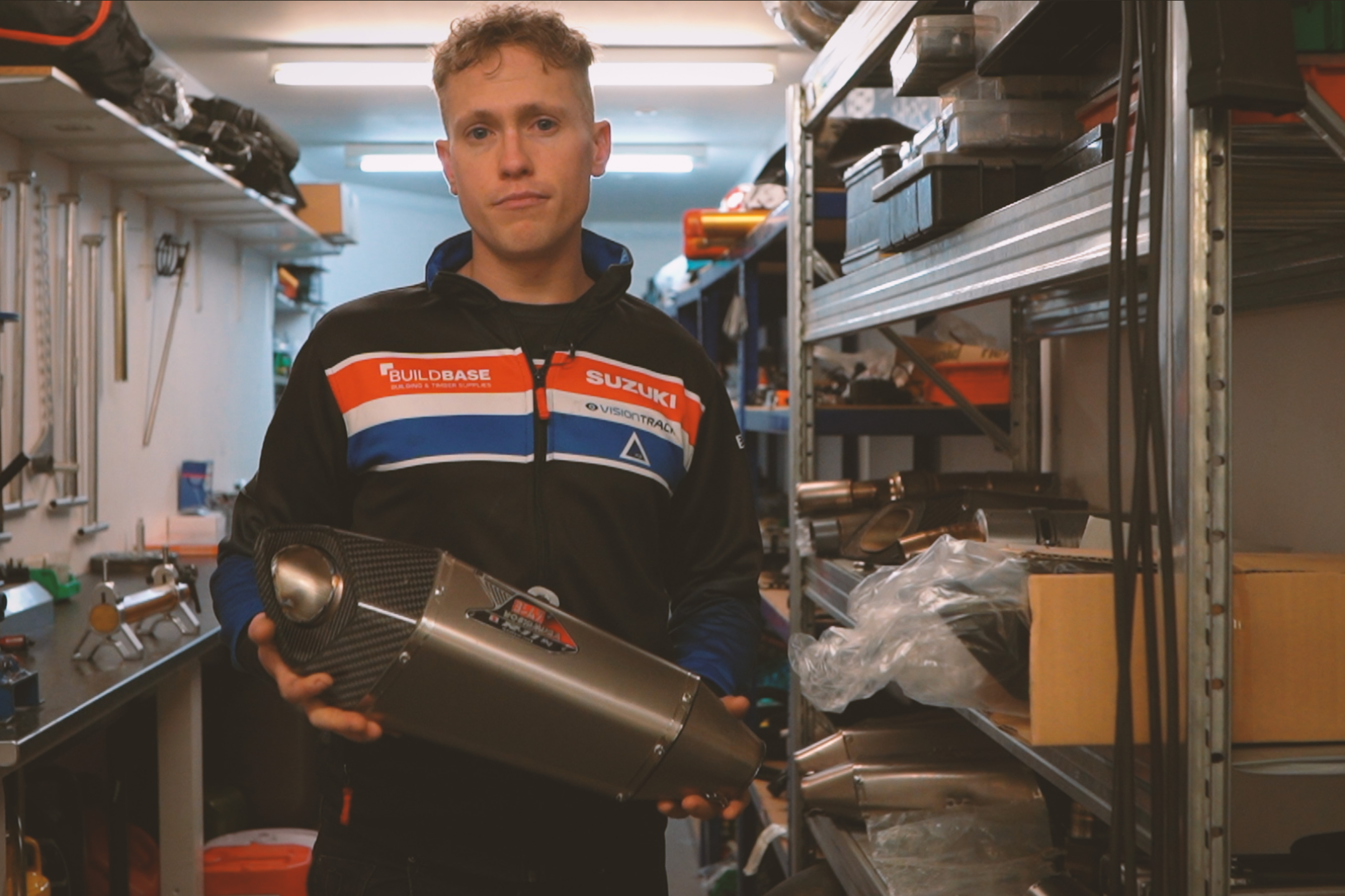 Go inside the Buildbase Suzuki team workshop and take a tour of its facilities, and see everything from parts stores to the engine building room.